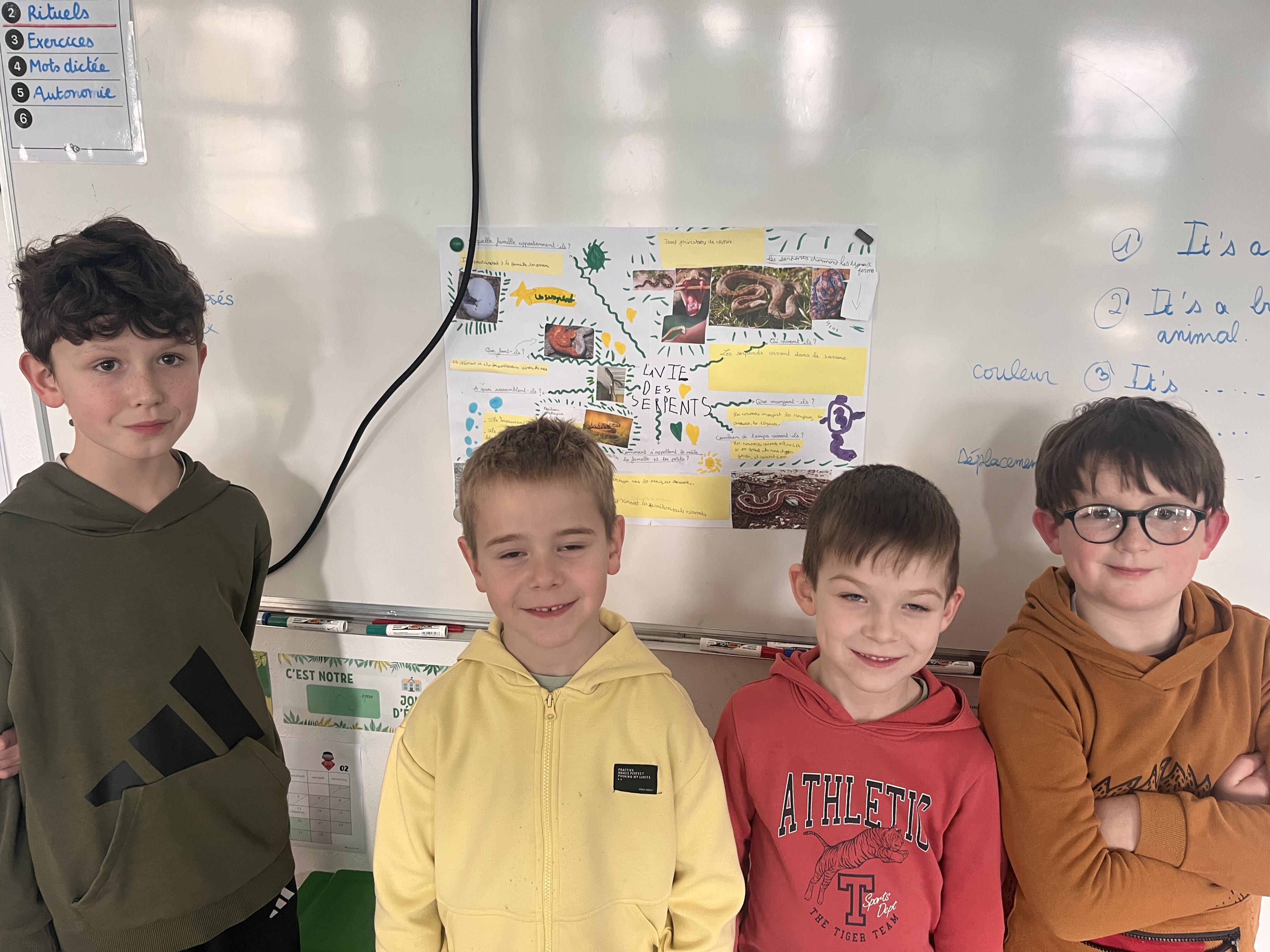 Dans le cadre de notre travail sur le thĂšme des animaux, les Ă©lĂšves ont rĂ©alisĂ© de vĂ©ritables exposĂ©s, une activitĂ© quâils ont beaucoup apprĂ©ciĂ©e, notamment grĂące au travail en groupe, une modalitĂ© quâils adorent !