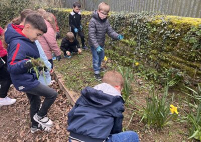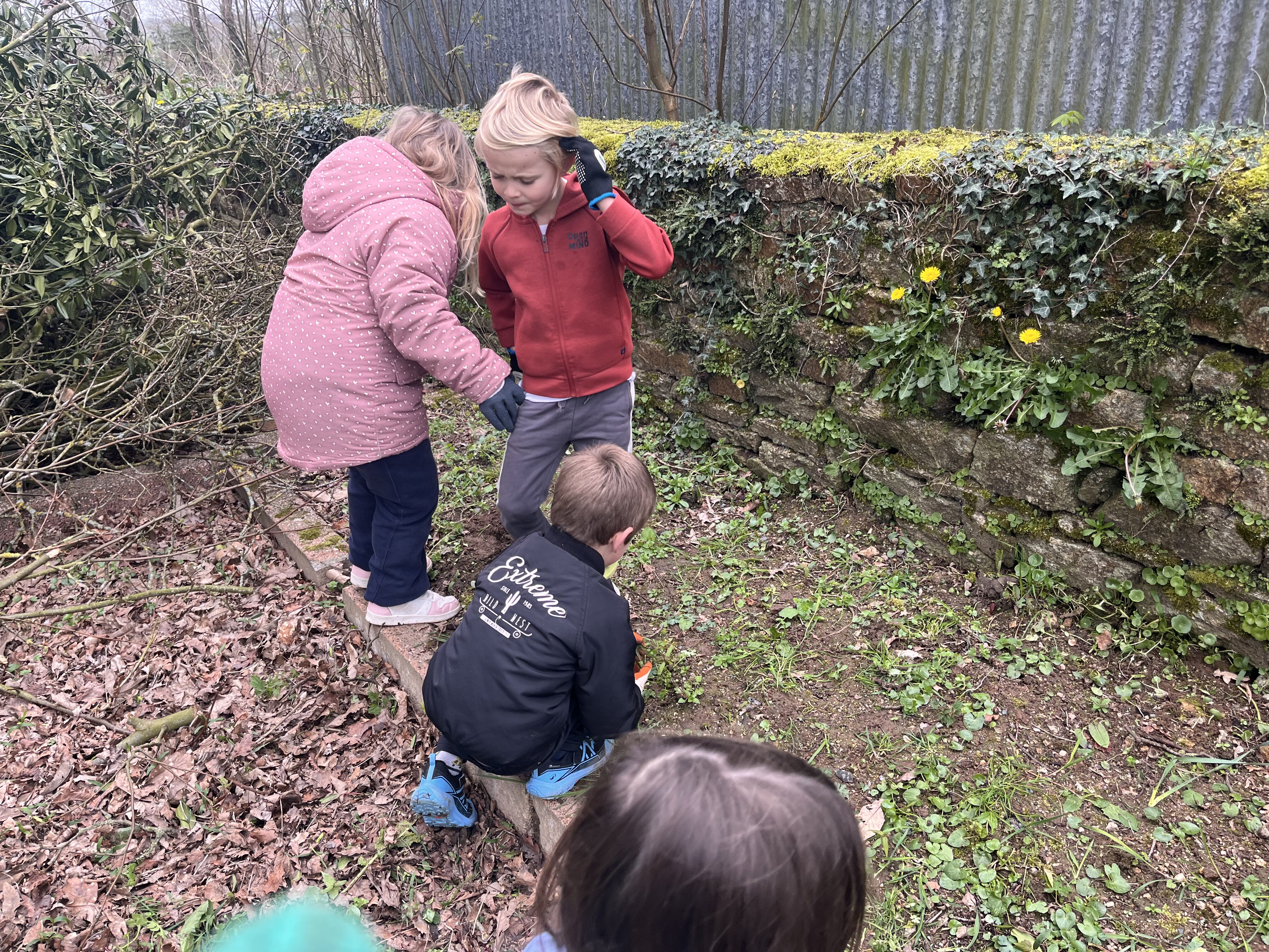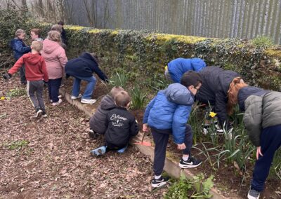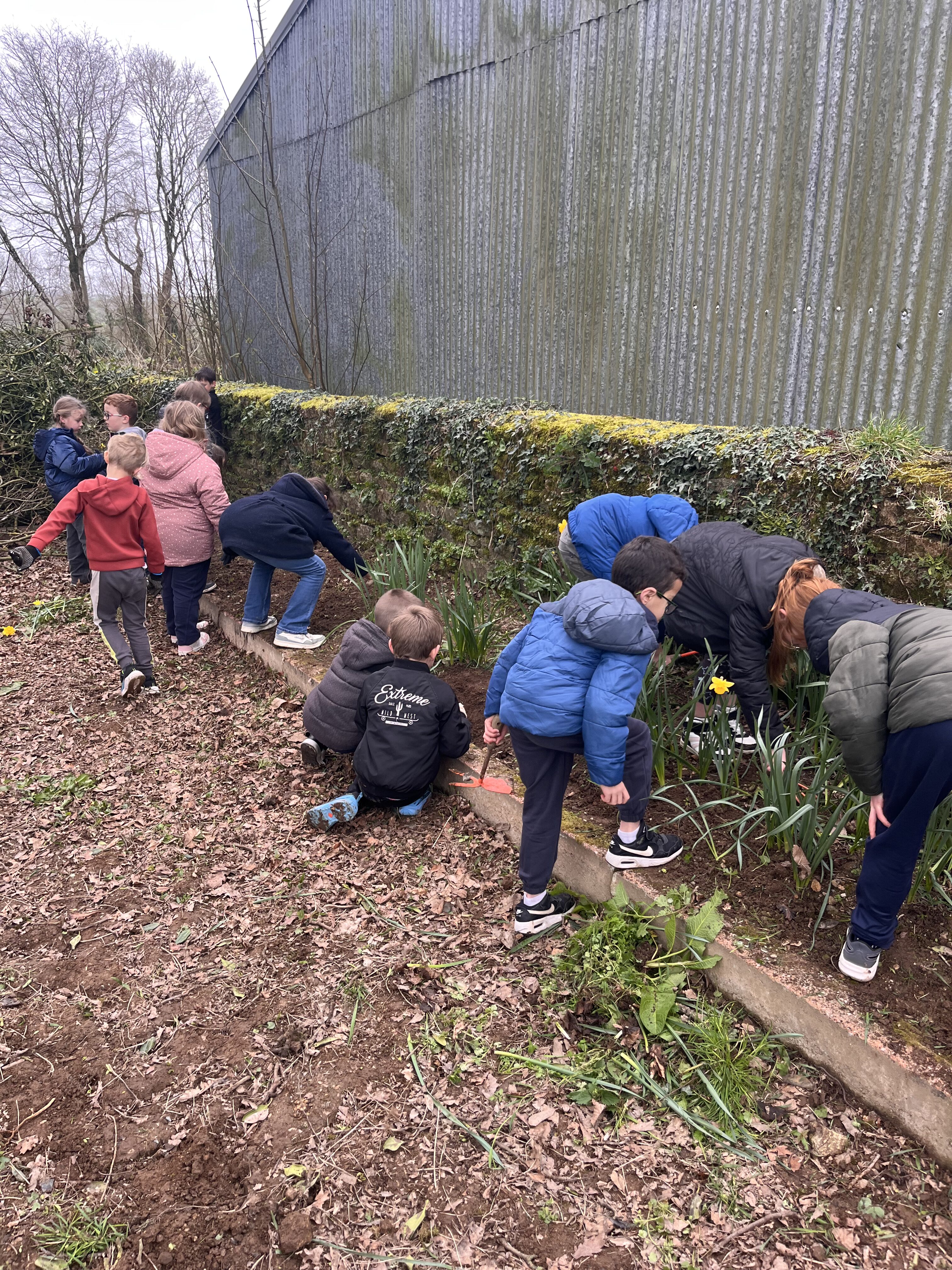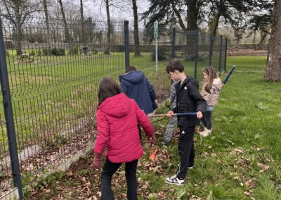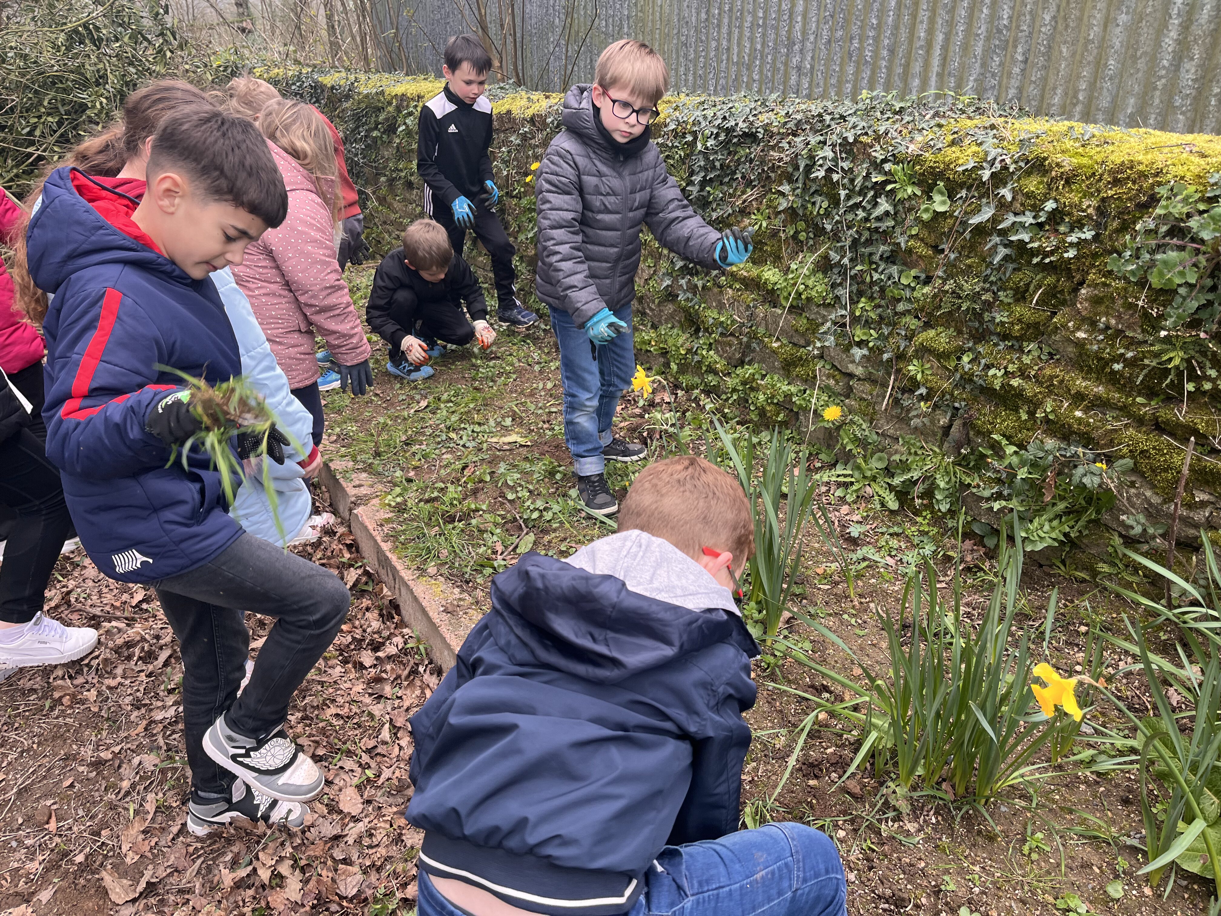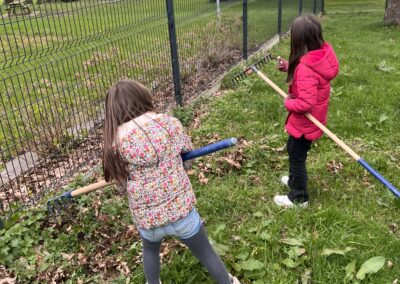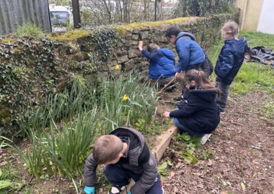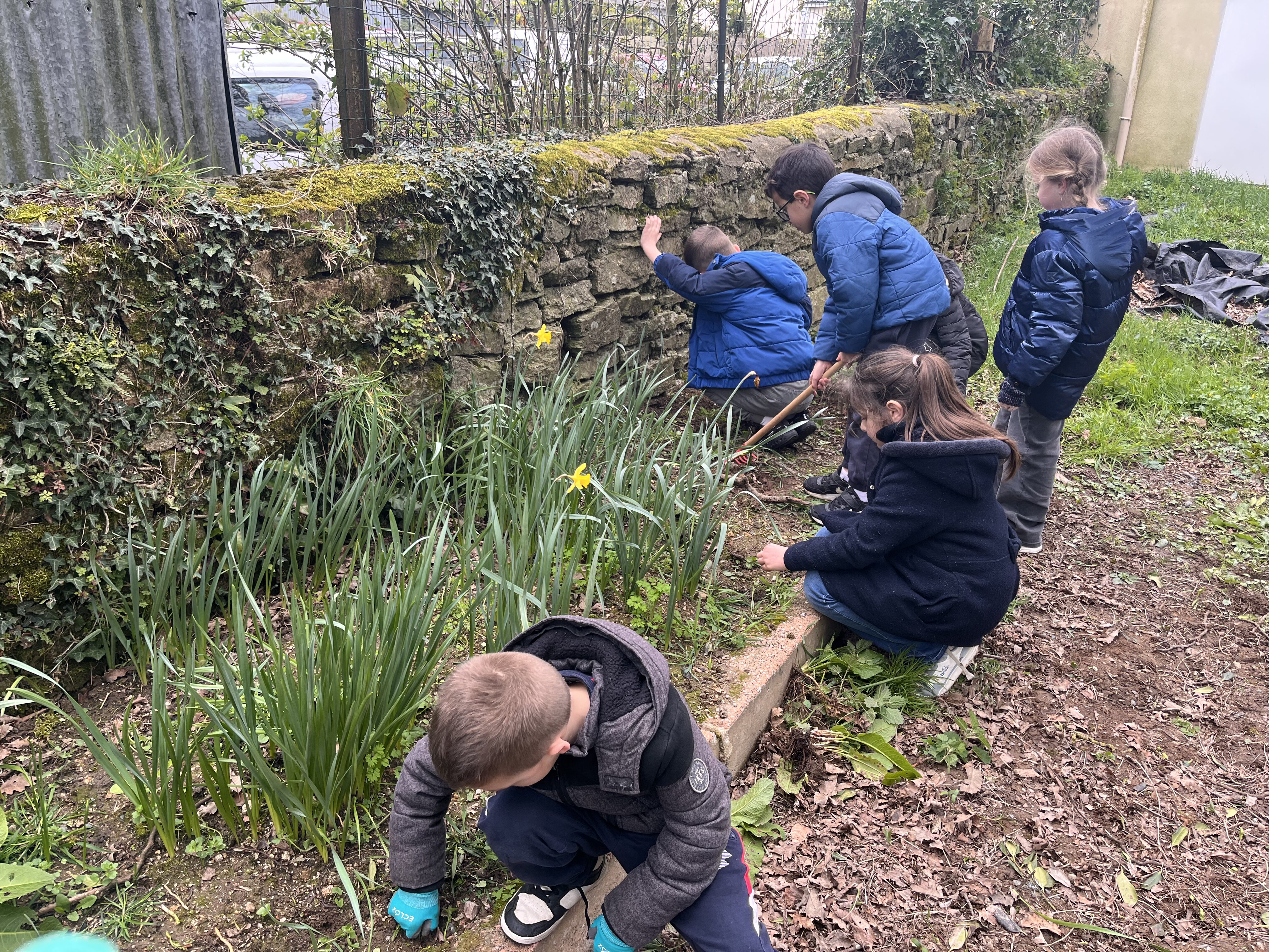 Avant de pouvoir faire des plantations, nous devons préparer la terre : nous avons donc entrepris de désherber le potager. Les élèves ont sorti les gants de jardinage ainsi que les outils pour se mettre au travail.🪏